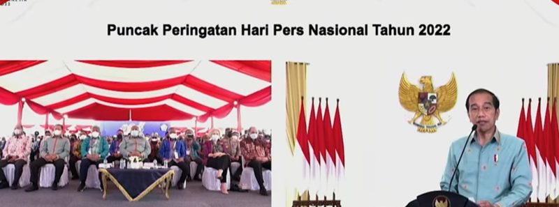 Presiden RI Joko Widodo (Jokowi) menghadiri Puncak Peringatan Hari Pers Nasional (HPN) Tahun 2022, Rabu (09/02/2022), secara virtual dari Istana Kepresidenan Bogor, Jawa Barat. Puncak Peringatan HPN sendiri dipusatkan di Kendari, Sulawesi Tenggara.