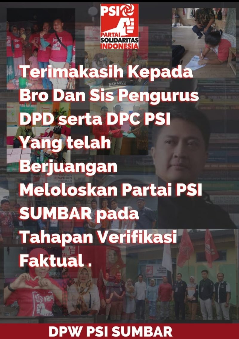 Setelah dinyatakan lolos oleh KPUD Sumatera Barat, secara nasional nasib kelolosan partai PSI juga akan diumumkan oleh KPU-RI pada tanggal 14 Desember.