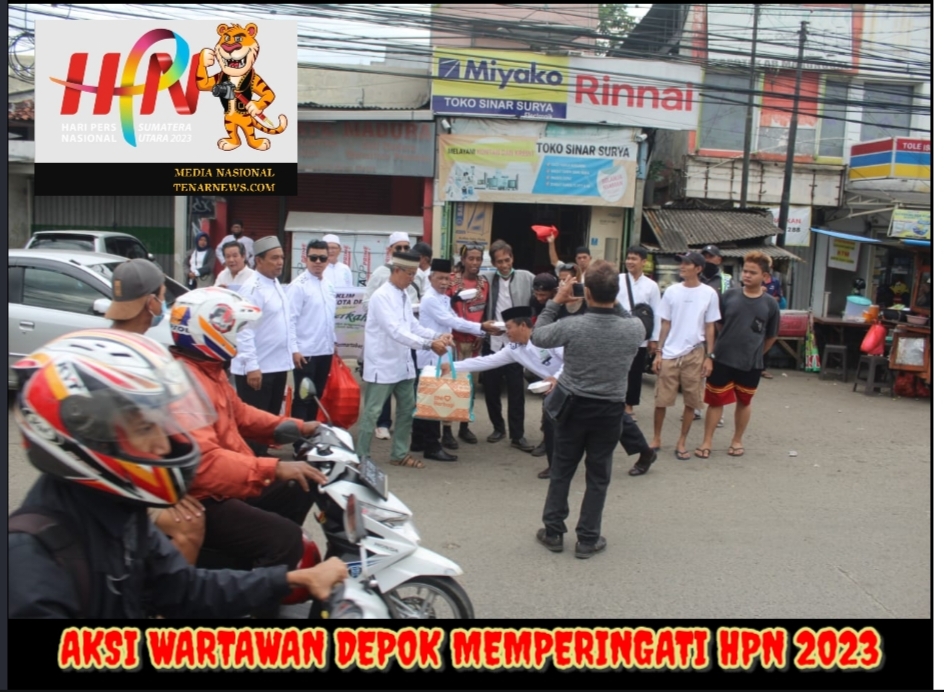 Depok Tenarnews Tv9,-Dalam menyambut Hari Pers National ( HPN) 2023, Jama’ah Majelis Taklim Balai wartawan (Balwan) Kota Depok Jabar adakan Jum’at berkah yang digelar di simpang Depok Raya Jakarta – Bogor Kel. Jatijajar, Kec. Tapos Kota Depok,” (10/02/2023).