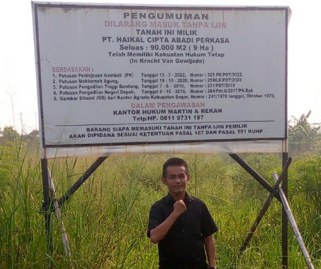 “Saya menolak kompensasi tersebut karena merasa ada yang tidak beres. Belakangan saya mendapati bahwa PT Haikal sudah dijadikan ‘bancaan’ oleh oknum tertentu. Bahkan, lahan seluas 9,3 hektar yang dimiliki perusahaan kini sudah dipasang papan nama PT Haikal, padahal proses hukum terkait perusahaan ini belum selesai di Mabes Polri,” ujar Yan.